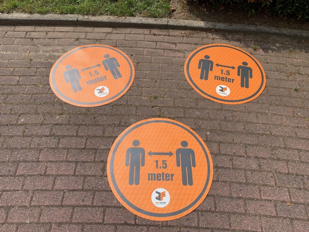 Dieses Bodenmarkierung Vinyl 1,5 Abstand hat einen Durchmesser von ca. 80 cm, lässt sich leicht auf jeder Oberfläche platzieren und hilft den Leuten, sich an den vorgeschriebenen Abstand zu erinnern. Dieser 1,5 Meter Abstand Kreis ist nützlich, um beispielsweise eine Hüpfburg oder eine andere Attraktion zu platzieren. Diese Variante ist ideal, wenn sich eine Attraktion bzw. Hüpfburg auf einer harten Oberfläche befindet.