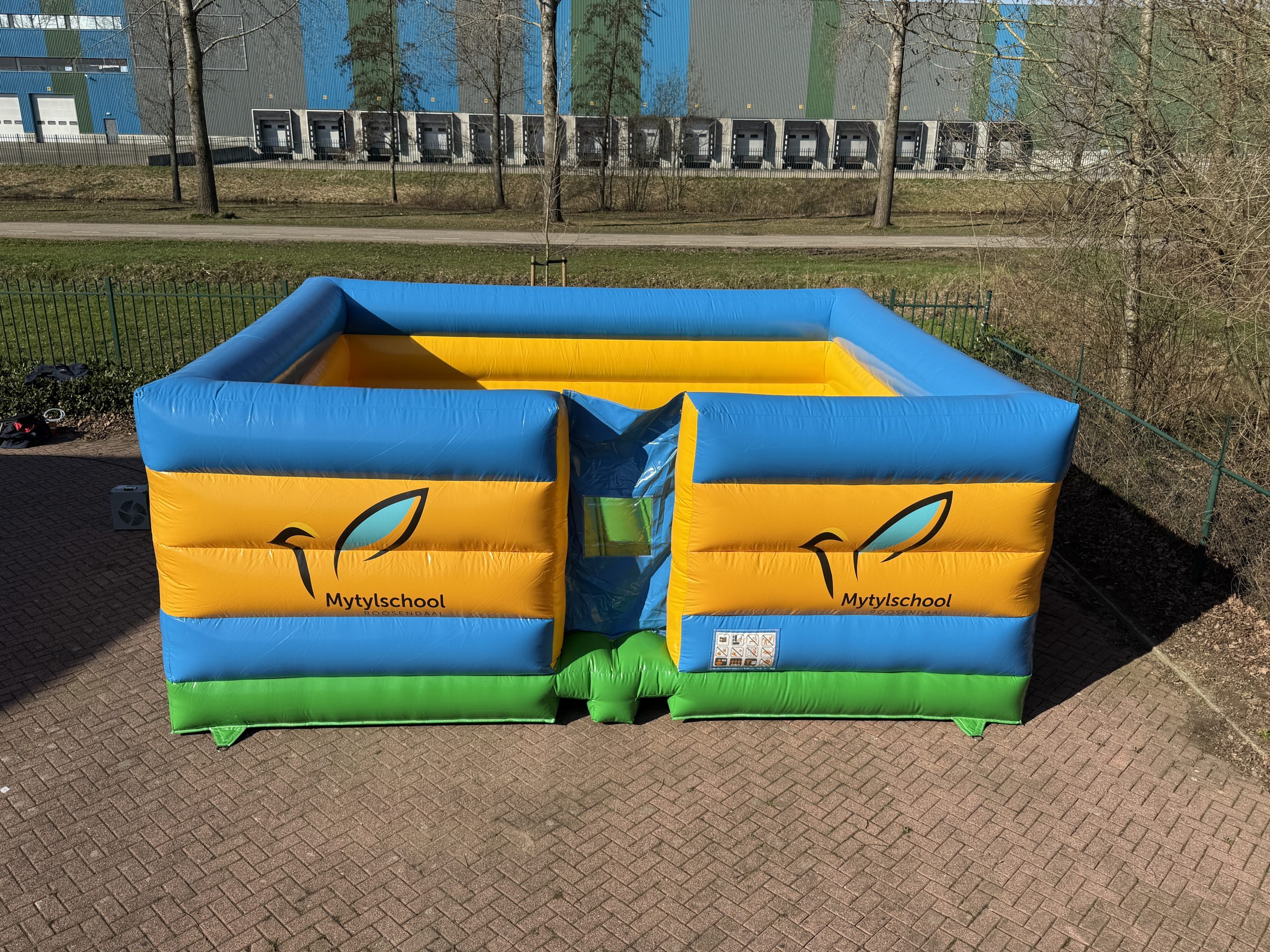 Diese Hüpfburg der Mytylschool Roosendaal wurde speziell entwickelt, damit alle Kinder mitmachen können. Mit einem breiten, rollstuhlgerechten Eingang können auch Kinder mit körperlichen Einschränkungen sicher und problemlos hinein gelangen. So fühlt sich jeder willkommen, und niemand wird ausgeschlossen.