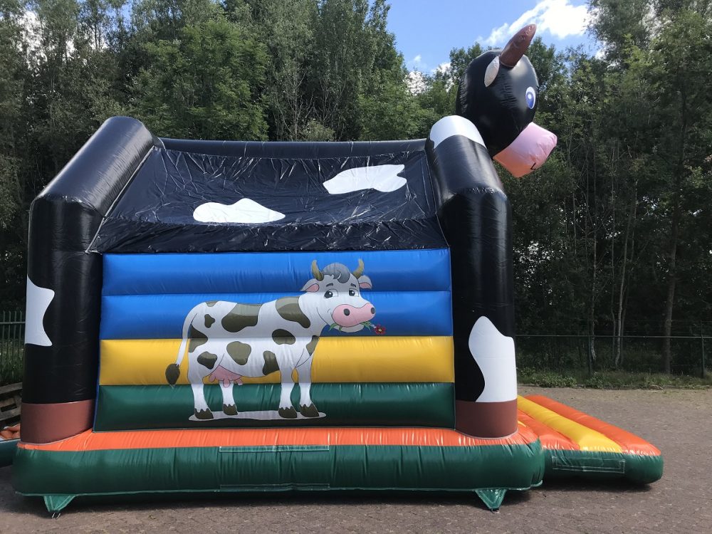 Die Huepfburg ist auch lieferbar als kleinere Hüpfburg Standard Kuh mit Dach.