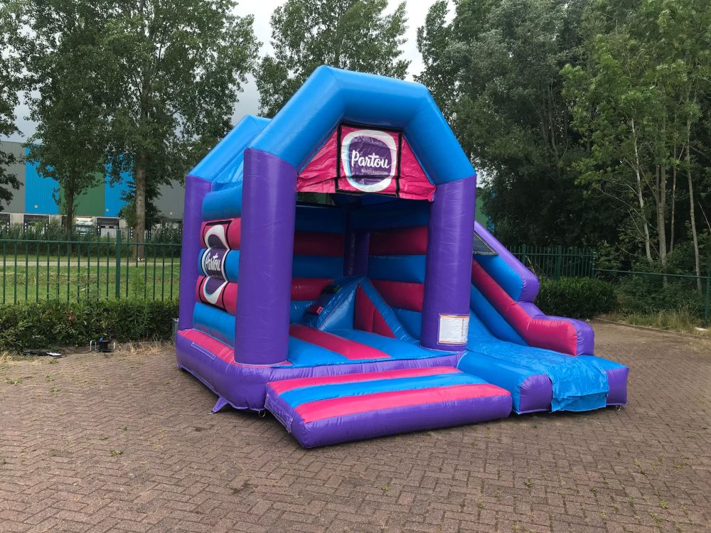 Hüpfburg Multifun Mini Partou für den Kindergarten Partou hergestellt. Eine farbenfrohe Hüpfburg, in der die Hausfarben verarbeitet wurden. Dadurch ist das Luftkissen sehr gut erkennbar. Darüber hinaus ist die Hüpfburg mit mehreren Logos versehen. Diese werden mit Klettverschluss an der Huepfburg befestigt, so dass es auch ohne Logos verwendet werden kann. Neben der Hüpffläche können sich die Kinder auch auf der Rutsche amüsieren. Teilweise wegen das Das sind die Kinder sowohl vor dem Regen als auch vor den warmen Sonnenstrahlen geschützt. Besser gesagt, die ideale Hüpfburg, um Ihren kleinen Gästen den Tag ihres Lebens zu schenken. Darüber hinaus erfüllt die Hüpfburg alle Sicherheitsanforderungen und verfügt daher über ein eigenes Zertifikat. Wenn Sie Fragen zu unseren Produkten haben, können Sie sich natürlich sofort an uns wenden. Dies kann zum Beispiel telefonisch, aber natürlich auch per E-Mail erfolgen.