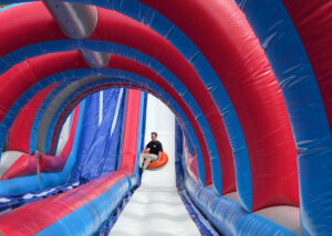 Mit Ihrem erhöhten Rutscheinstieg und der verlängerten Rutschbahn setzt sie noch einen oben drauf und eignet sich perfekt für größere Veranstaltungen, Feste und Sporttage an denen Herausforderungen und Spaß geboten werden sollen.