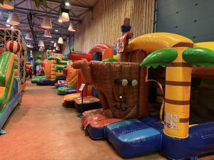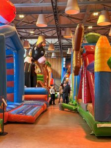 Geschäftiges Treiben inmitten von Hüpfburgen